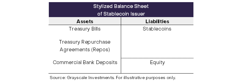 Estos instrumentos se parecen mucho a fondos mutuos del mercado monetario emitidos solamente por el gobierno: son tokens de valor estable en dólares completamente respaldados por letras del Tesoro o colaterales comparables. Las stablecoins mantienen su paridad con el dólar porque el emisor siempre está listo para redimir stablecoins a la par o emitir más stablecoins a cambio de efectivo. Esta es una estructura muy simple, y no una innovación particularmente interesante en sí misma. Sin embargo, cuando los dólares digitales tokenizados se implementan en una blockchain pública, ganan la funcionalidad de la blockchain, que incluye pagos sin fronteras, liquidación casi instantánea, costos potencialmente bajos y un alto grado de transparencia.