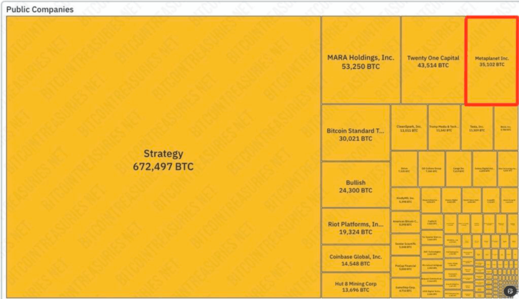 La distribución de Bitcoin en manos de empresas públicas muestra una fuerte concentración en actores corporativos que mantienen grandes reservas en sus balances.