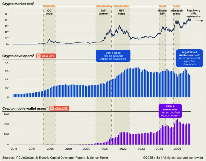La llegada de los ETFs al mercado ha significado una enorme inyección de capital institucional. Según datos de Farside Investors, los ETFs al contado en EE.UU. hoy administran un total de $56.4 billones al contado de bitcoin (623 mil BTCs, 3.1% de la oferta total), y $12.5 billones de ETFs al contado de ETH (4 millones ETHs, 3.3% de la oferta total). Además, la SEC aprobó en septiembre de 2025 estándares genéricos para listar estos fondos, acelerando la creación de nuevos ETFs (incluso de altcoins y productos de staking) en el cuarto trimestre. Esto ha introducido gradualmente una base de demanda más institucional que comprende el funcionamiento de Bitcoin y seguirá interiorizando cada vez más acerca de la tecnología blockchain en su sentido más amplio.