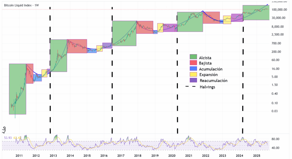 Históricamente, los ciclos de precios en el mercado cripto han sido influenciados por el halving de Bitcoin, que reduce la emisión de nuevas monedas cada cuatro años, creando una dinámica de oferta limitada que contribuía a rallies alcistas.