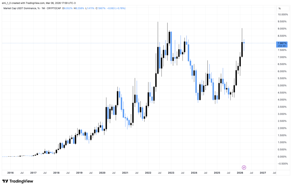 Al mismo tiempo, continúa creciendo la capitalización de las stablecoins. Activos como Tether y USD Coin siguen absorbiendo capital del mercado. Esto suele interpretarse como una señal defensiva: muchos inversores prefieren permanecer dentro del ecosistema cripto, pero reduciendo exposición a volatilidad mientras esperan mejores oportunidades.